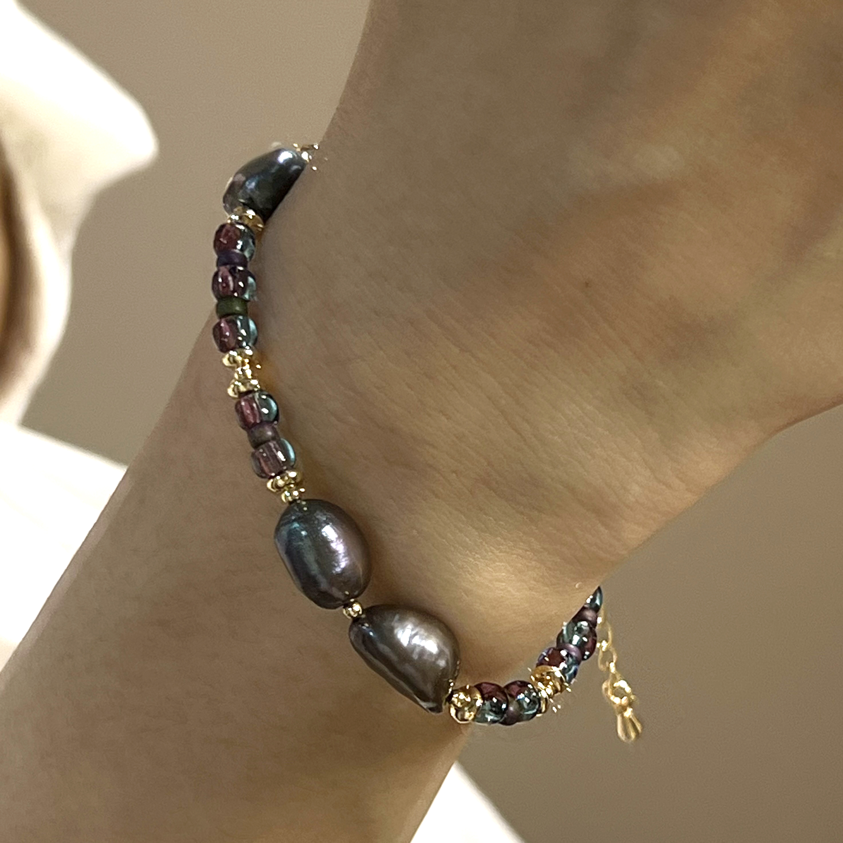 【獨家設計】個性復古|撞色琉璃巴洛克珍珠手鍊