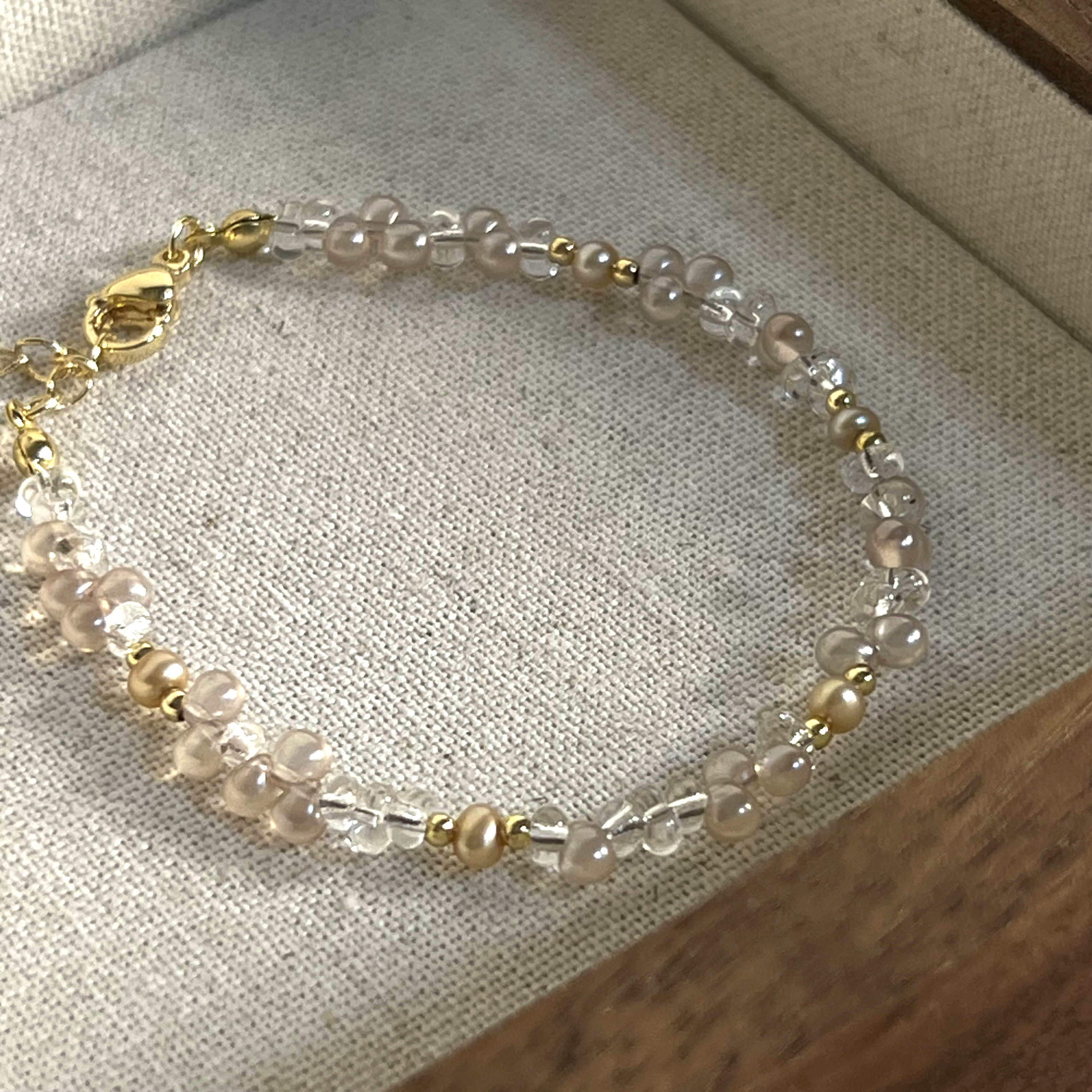 【獨家設計】奶油色系|天然異形珍珠玉石感手鍊