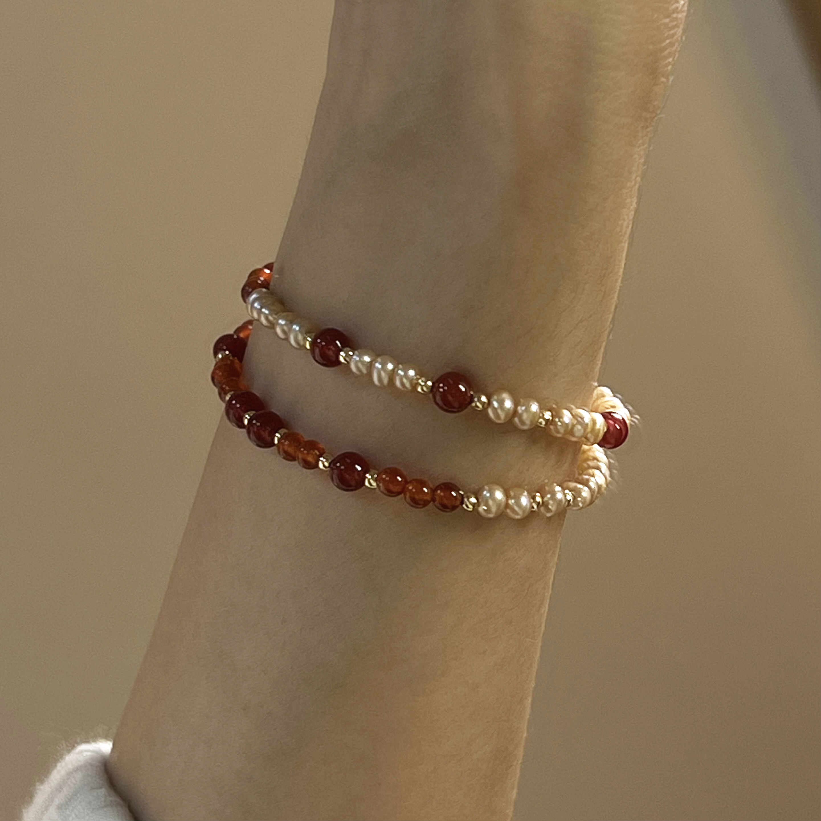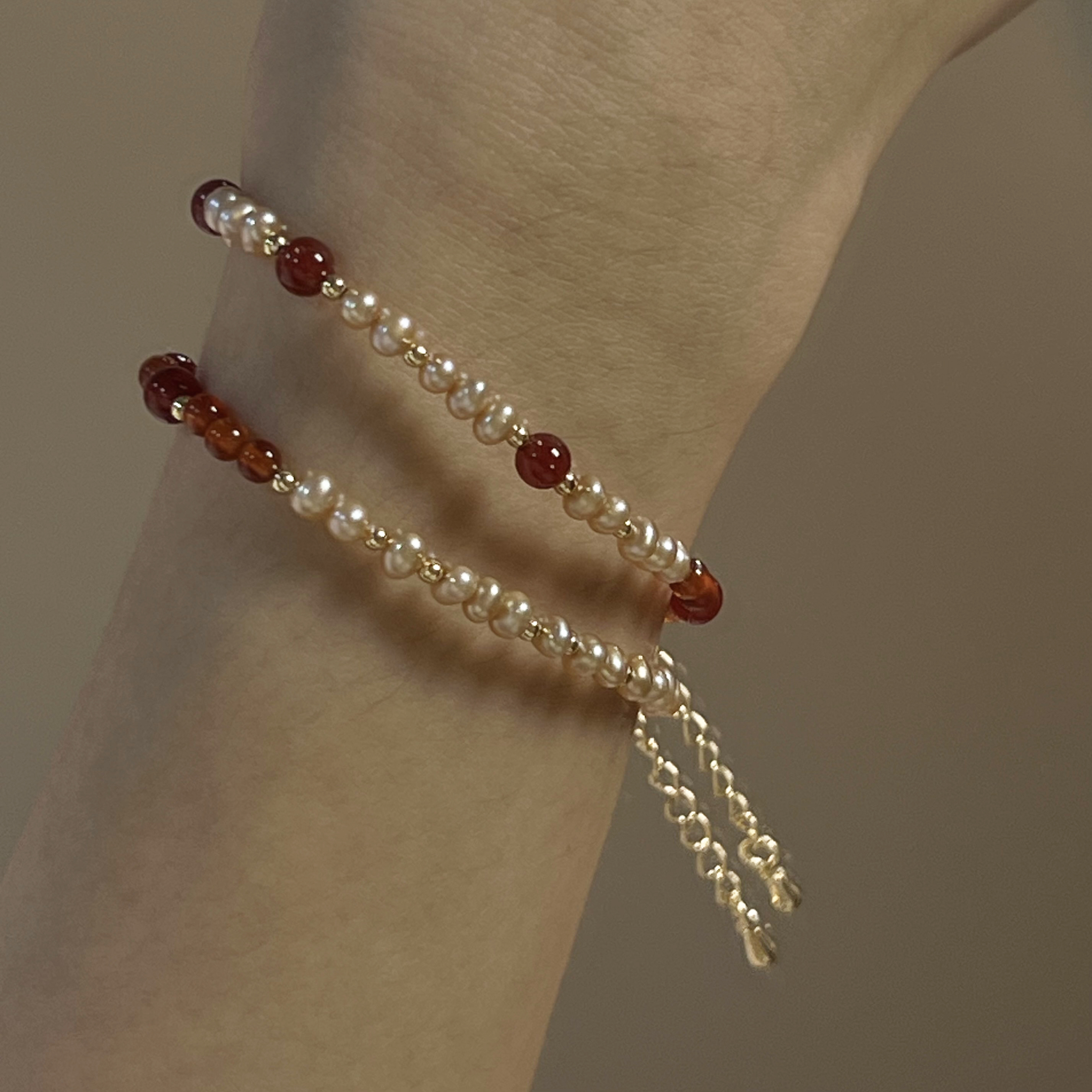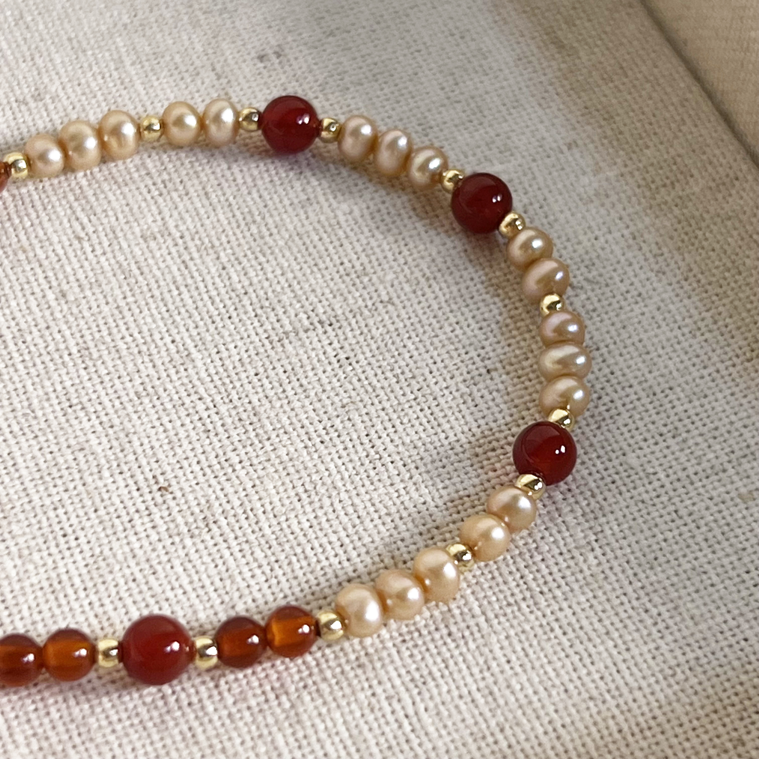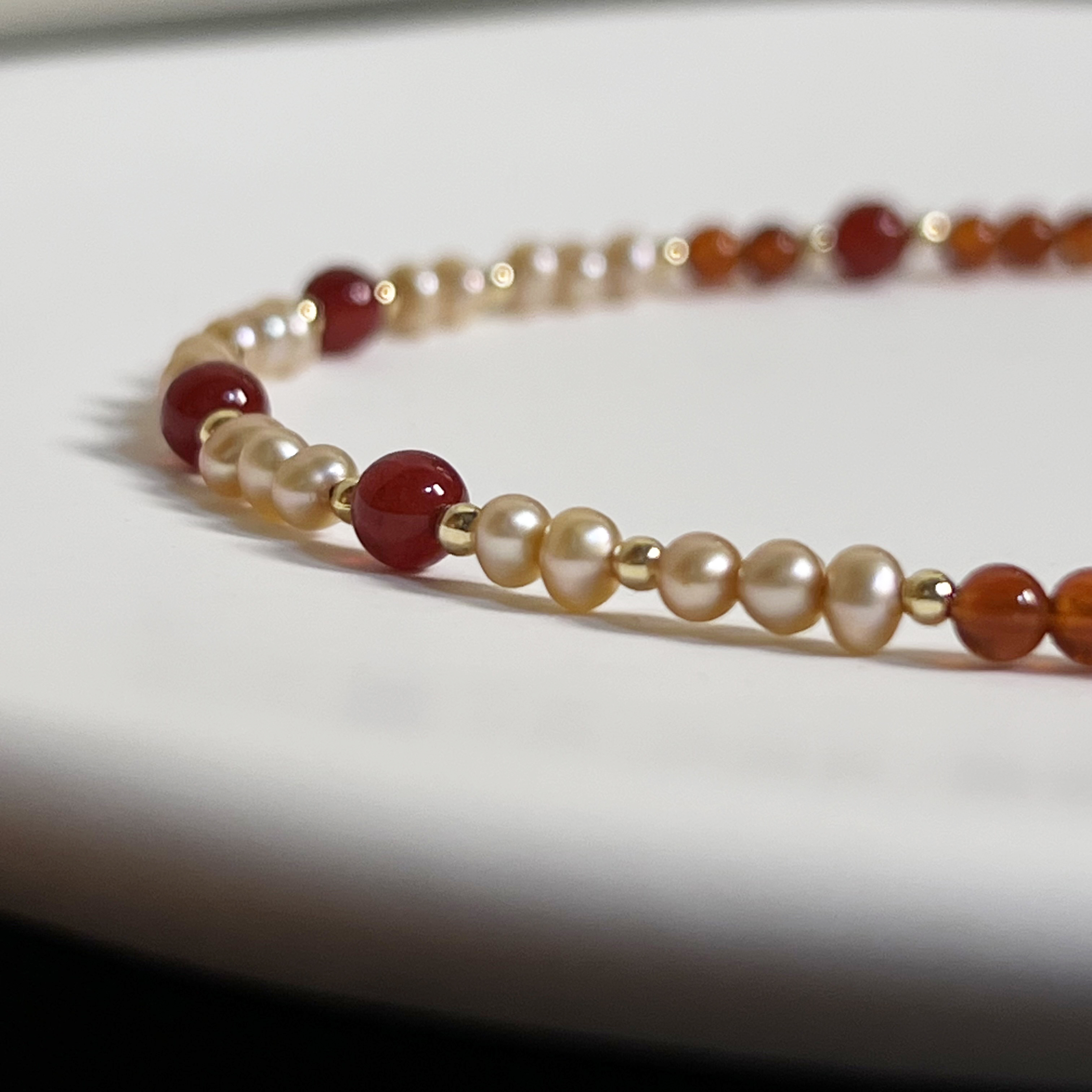 【獨家設計】積極活力|紅瑪瑙 x 天然珍珠手鍊