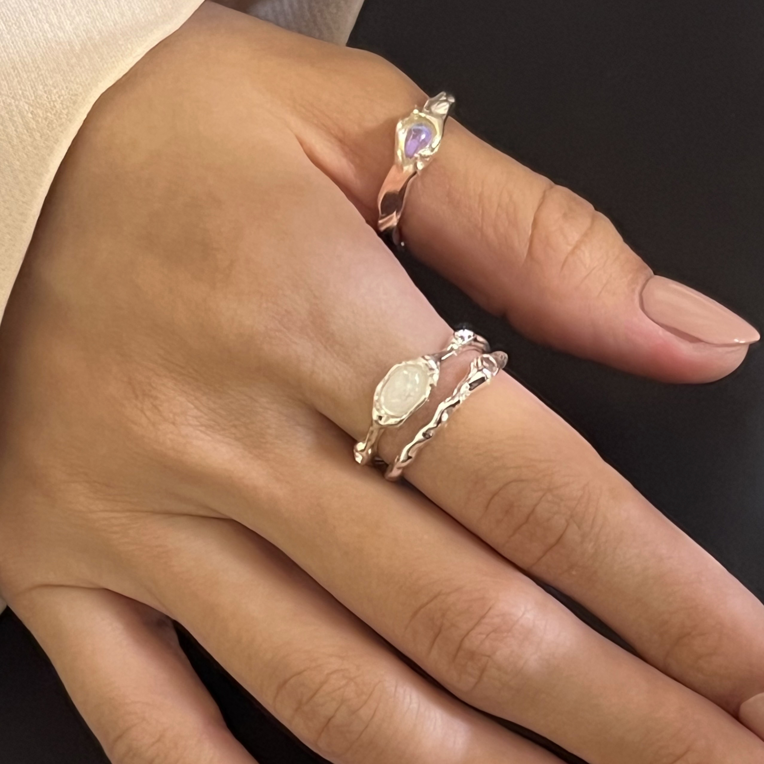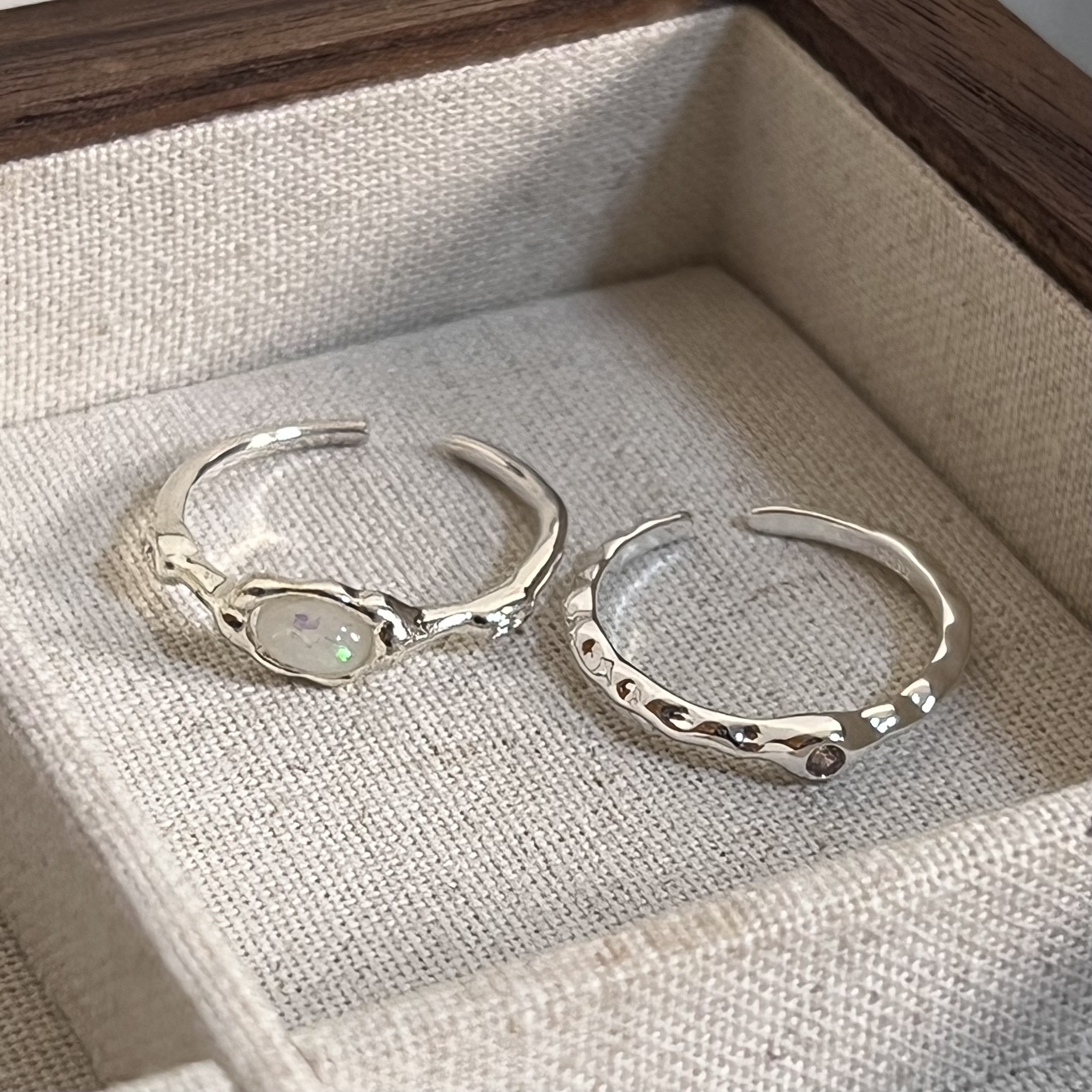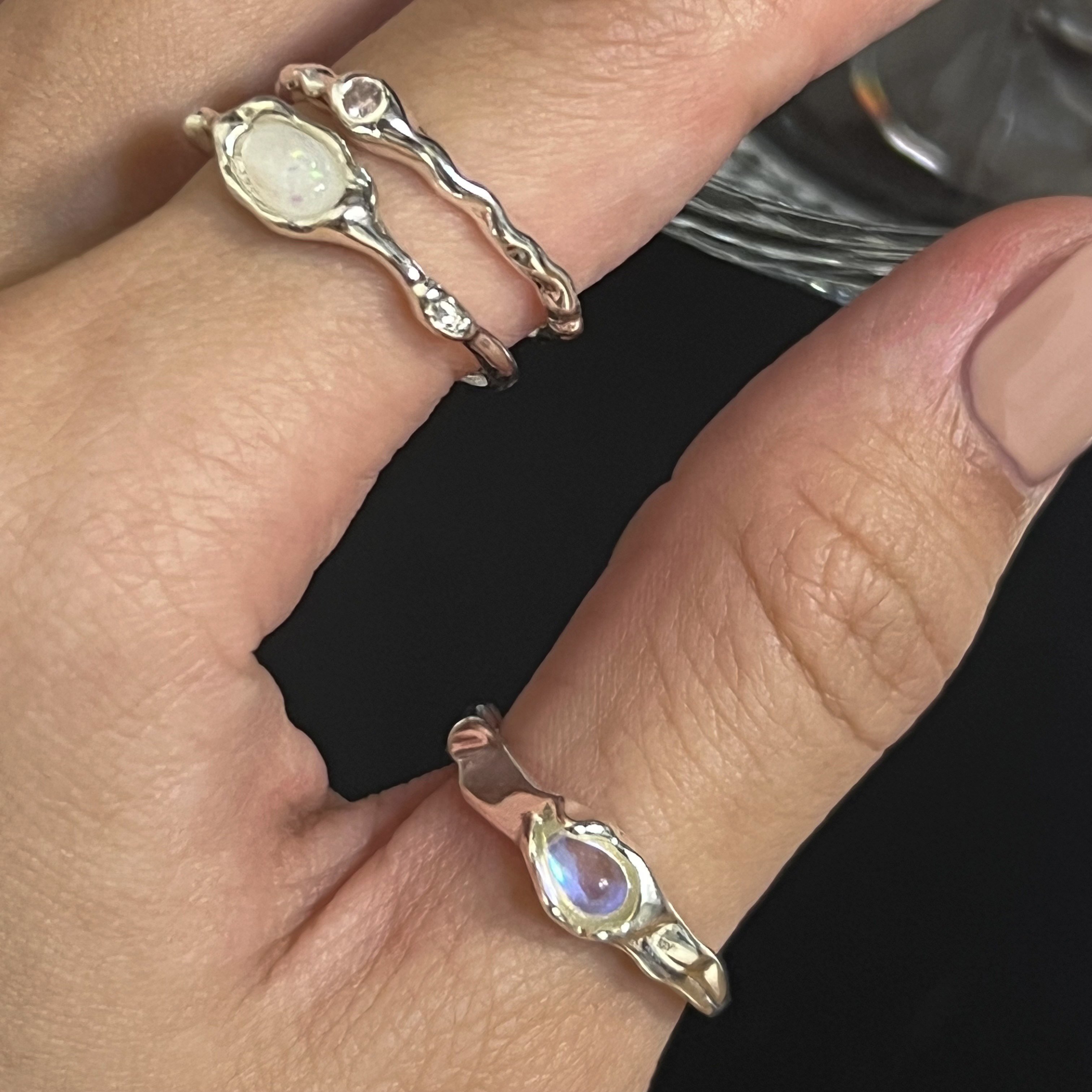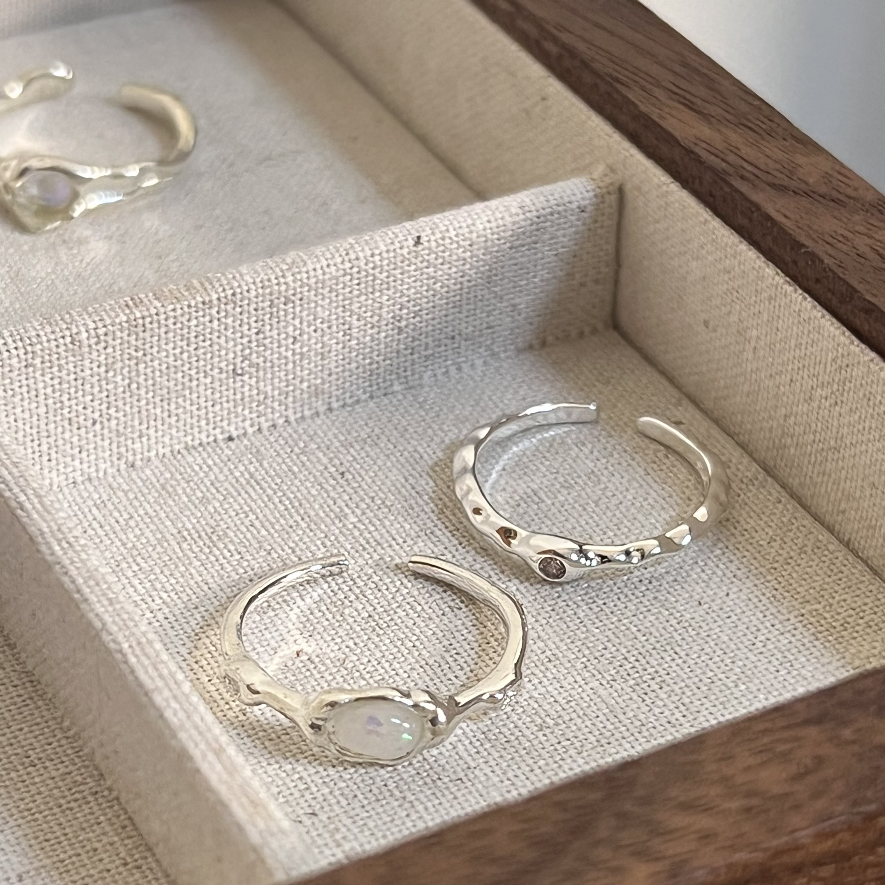 不規則流動波浪鑲嵌鋯石系列開口戒