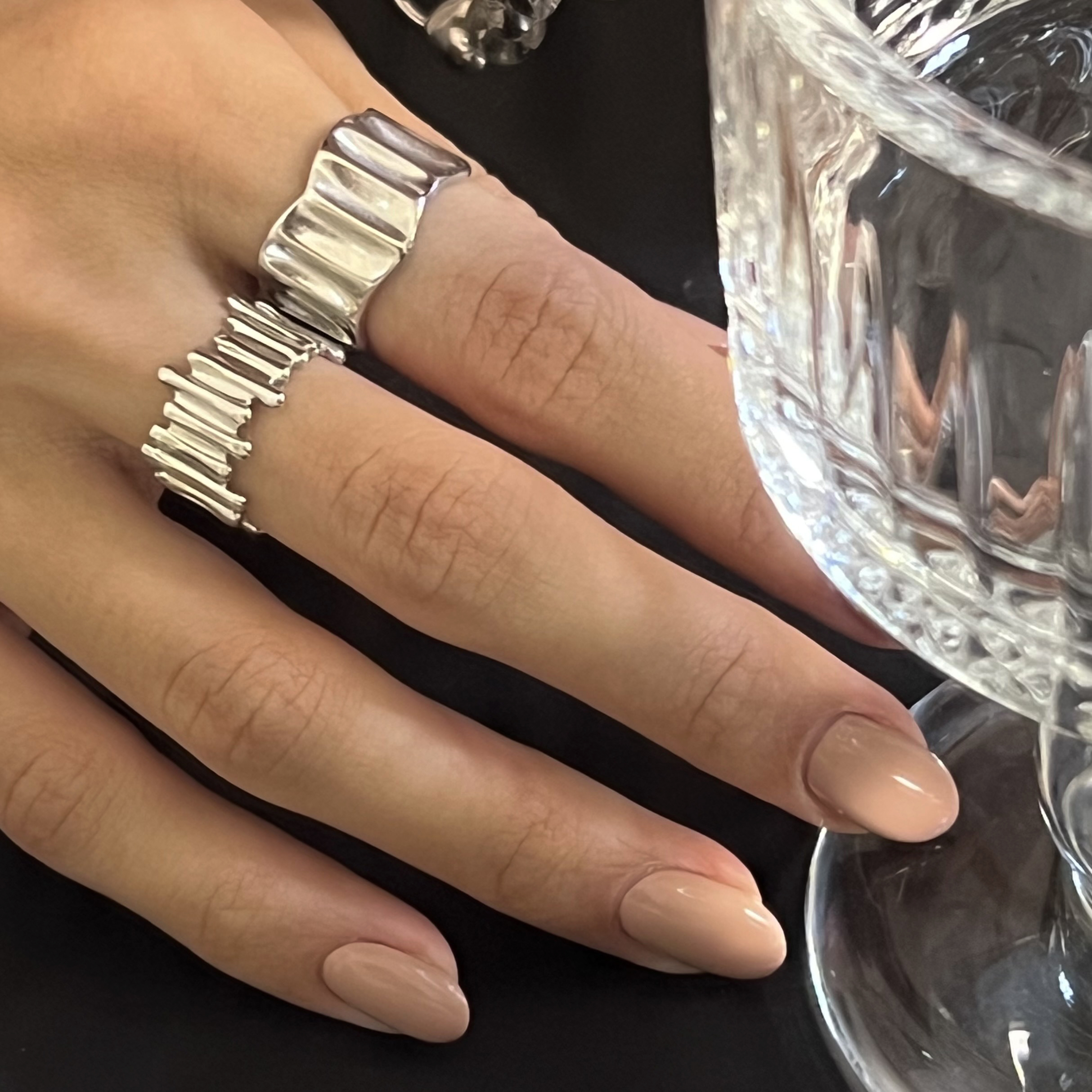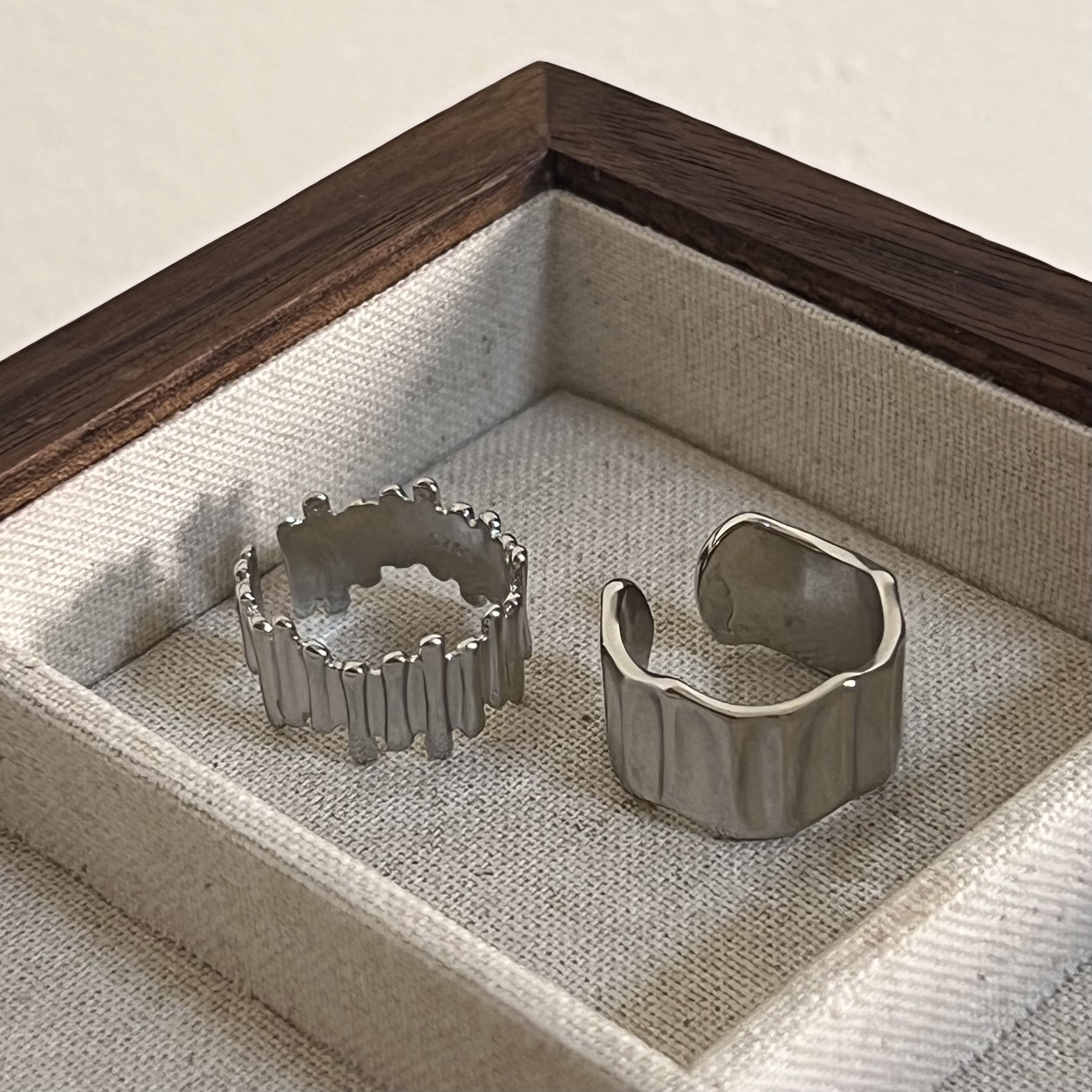 不規則流動波浪鑲嵌鋯石系列開口戒