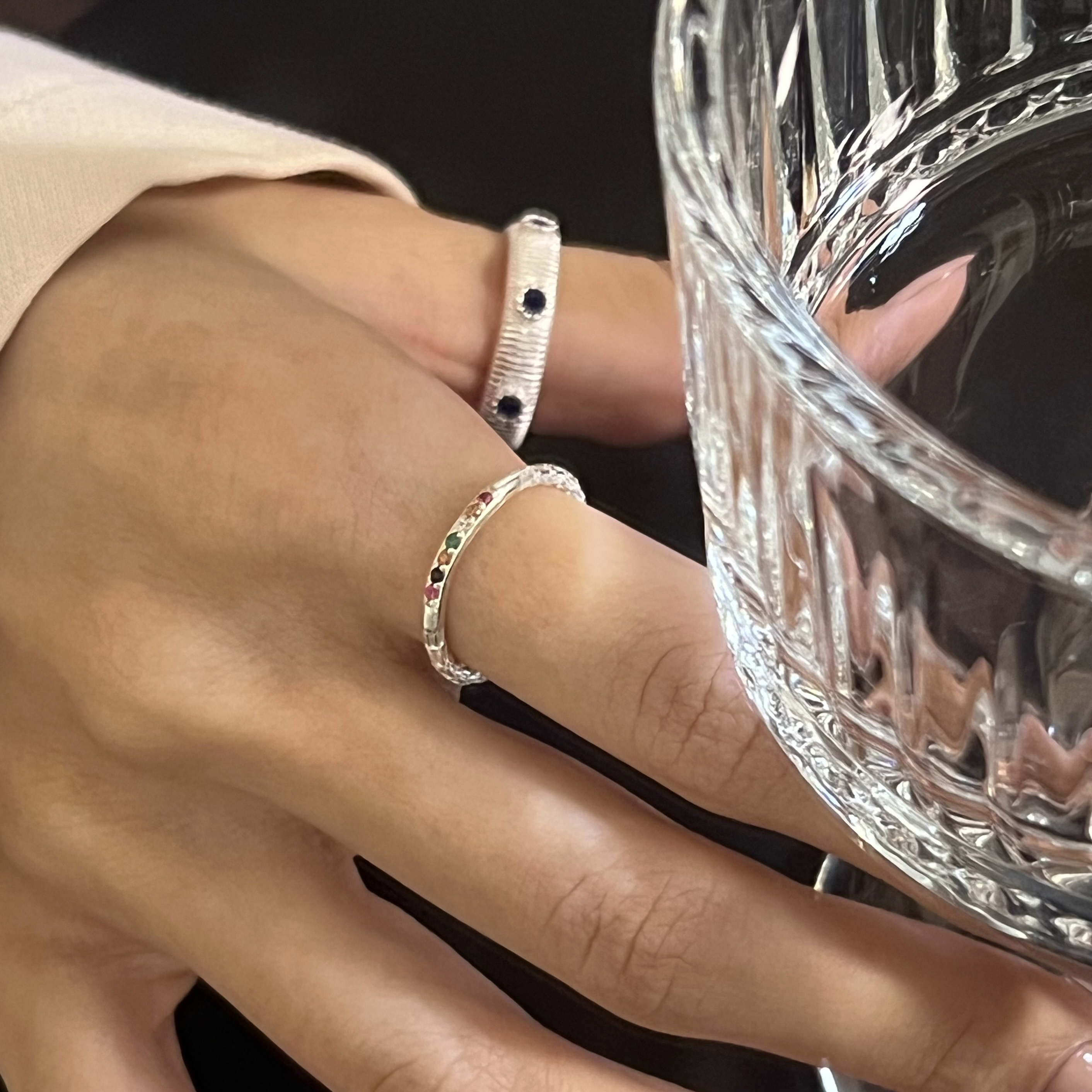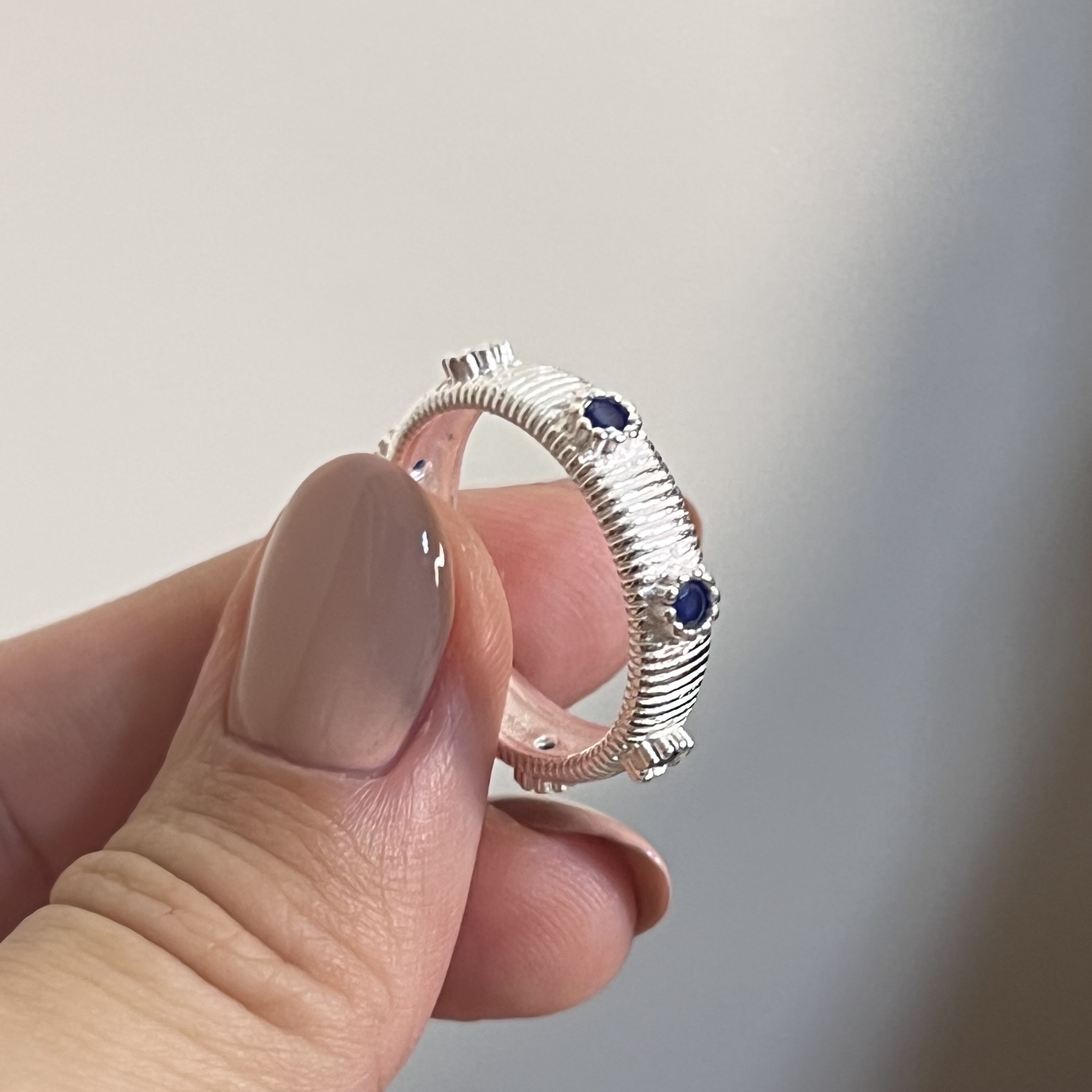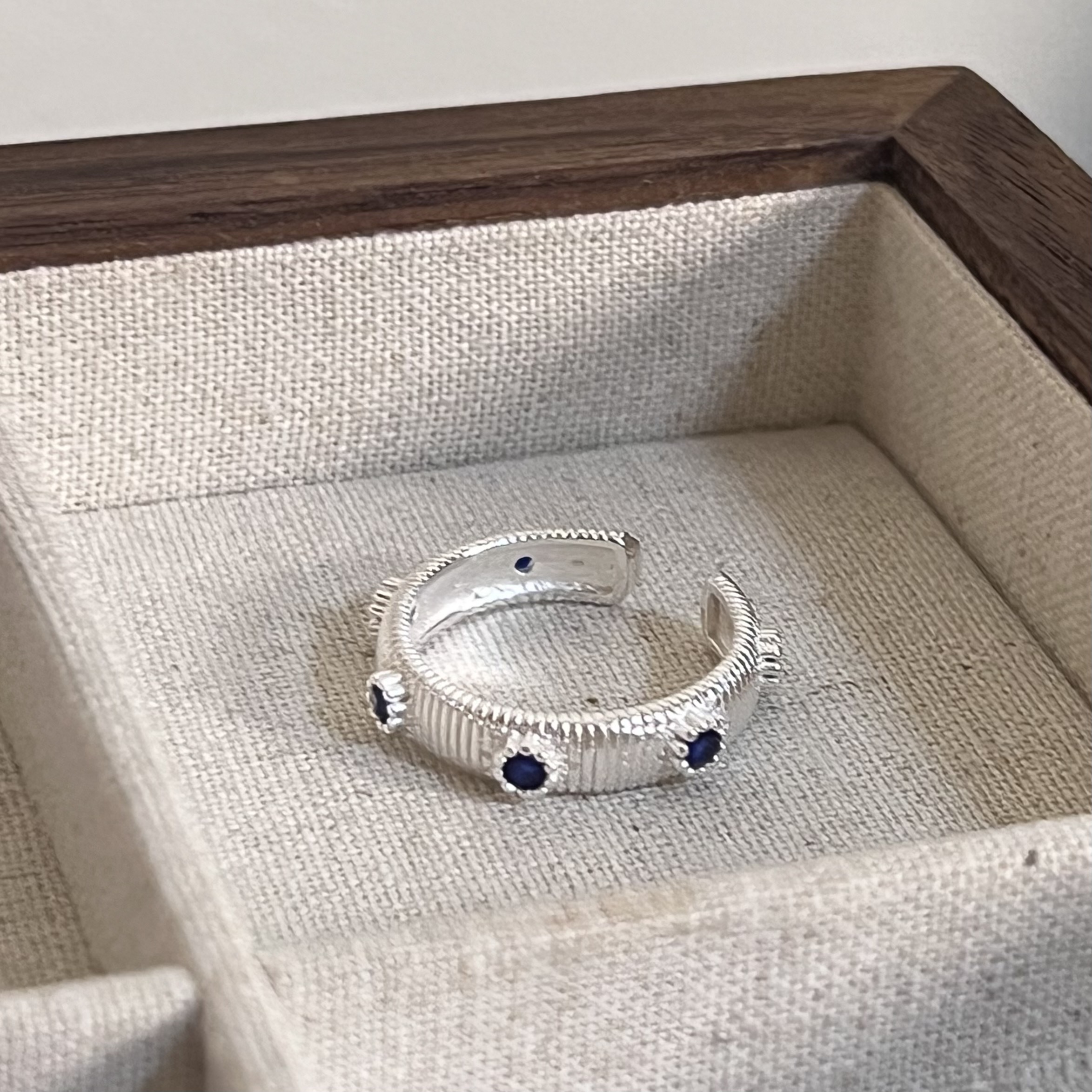 復古宮廷鑲嵌寶藍鋯石開口戒