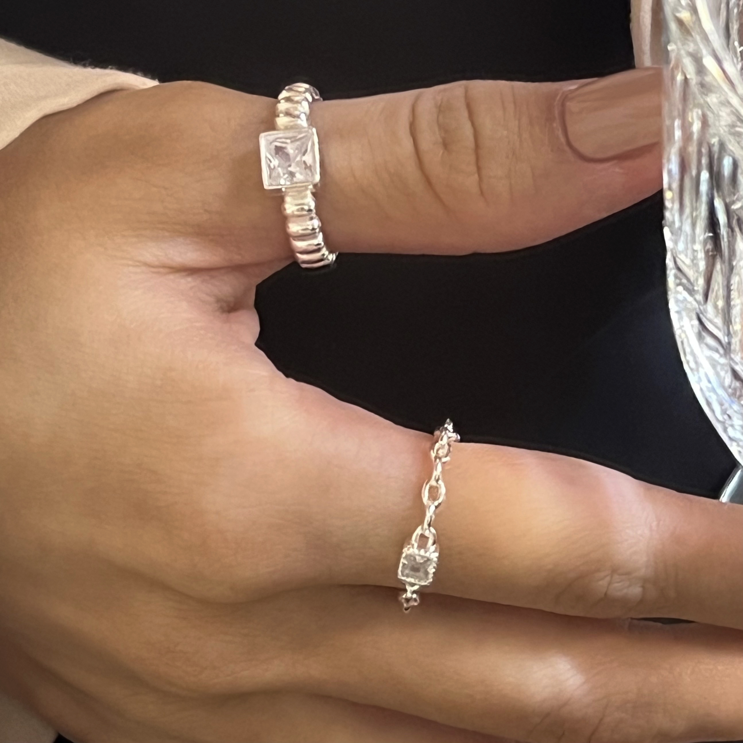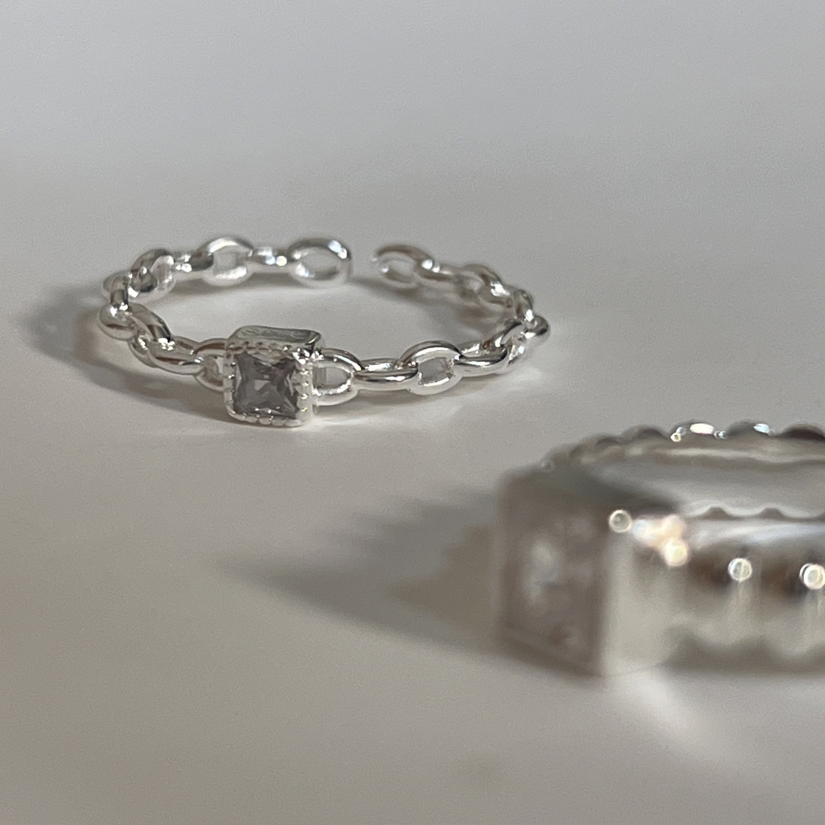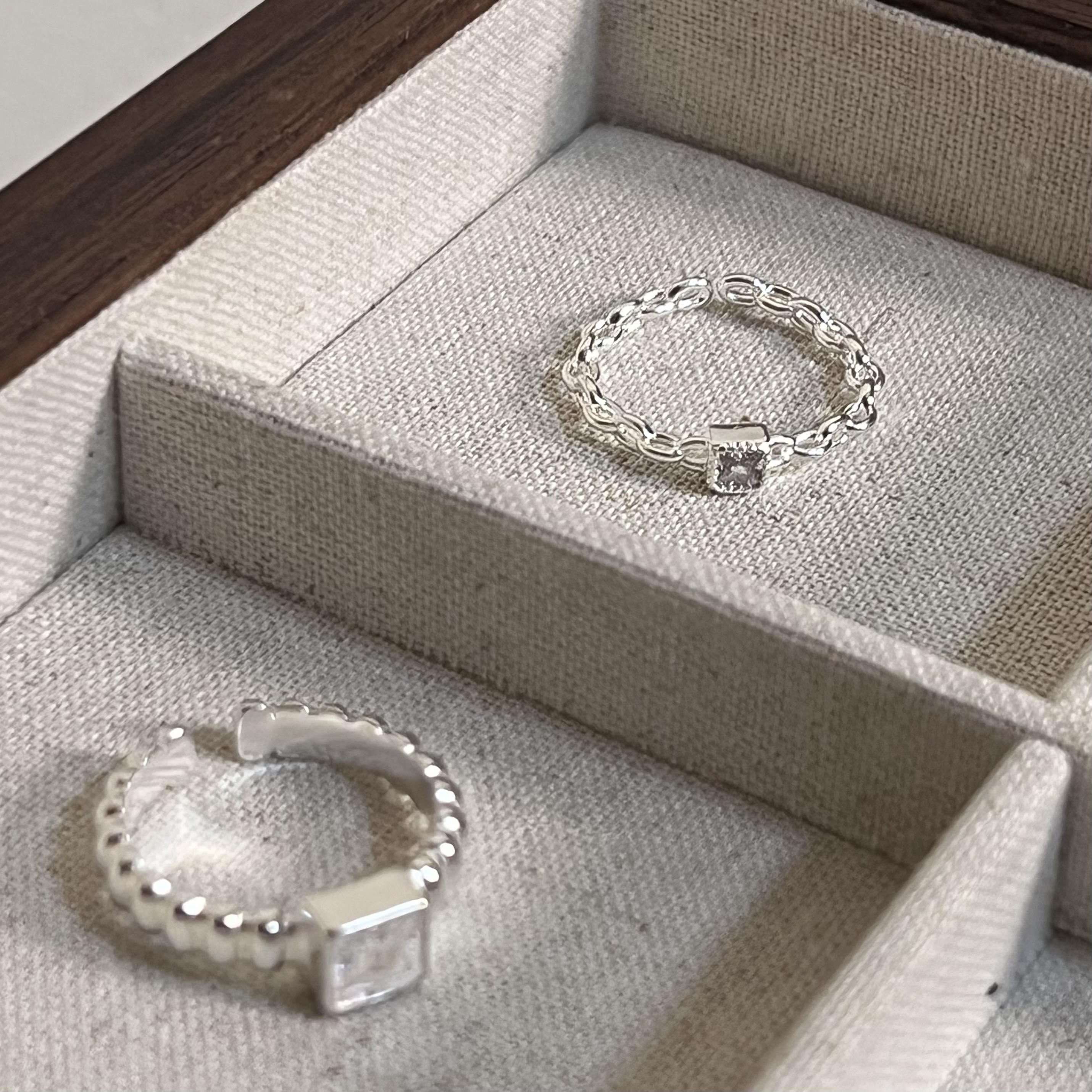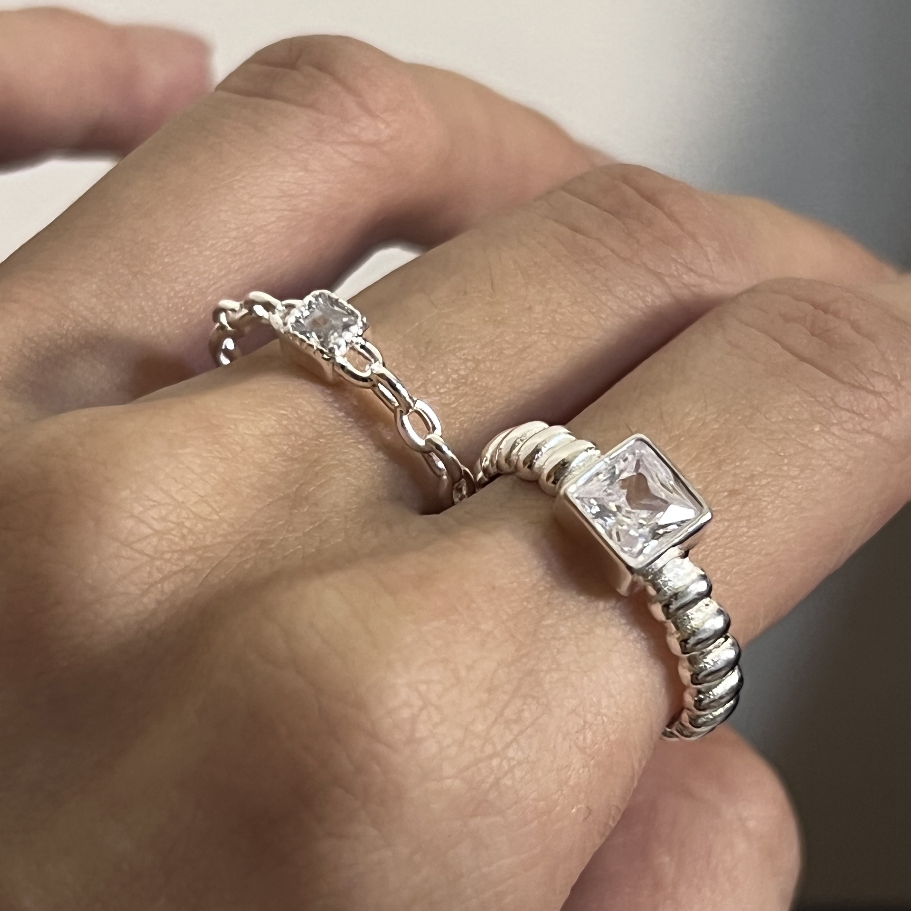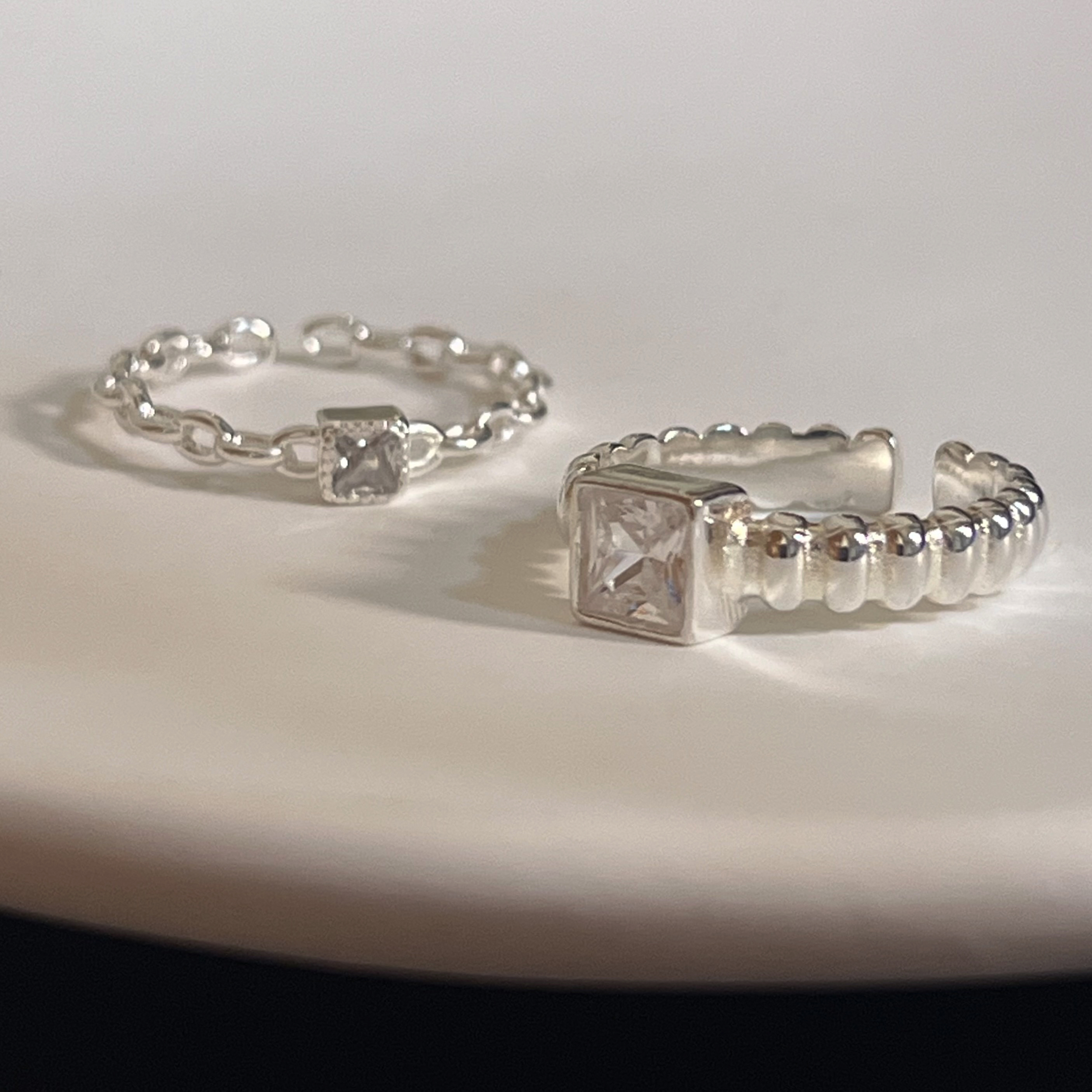 不規則流動波浪鑲嵌鋯石系列開口戒