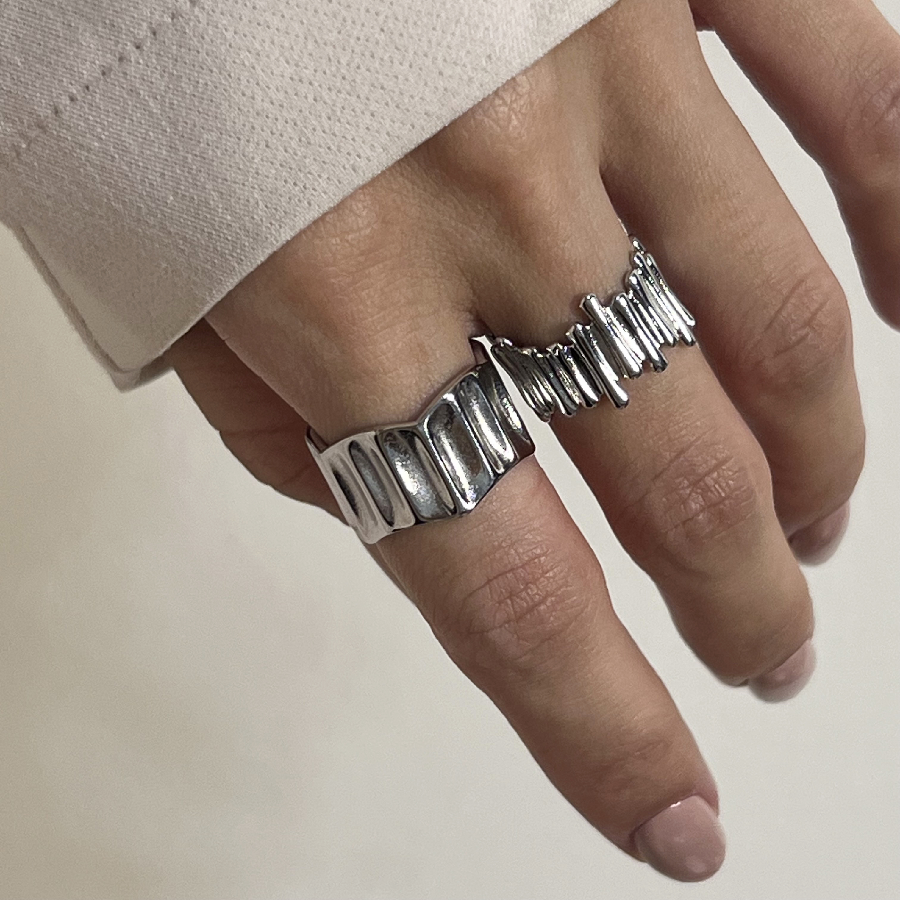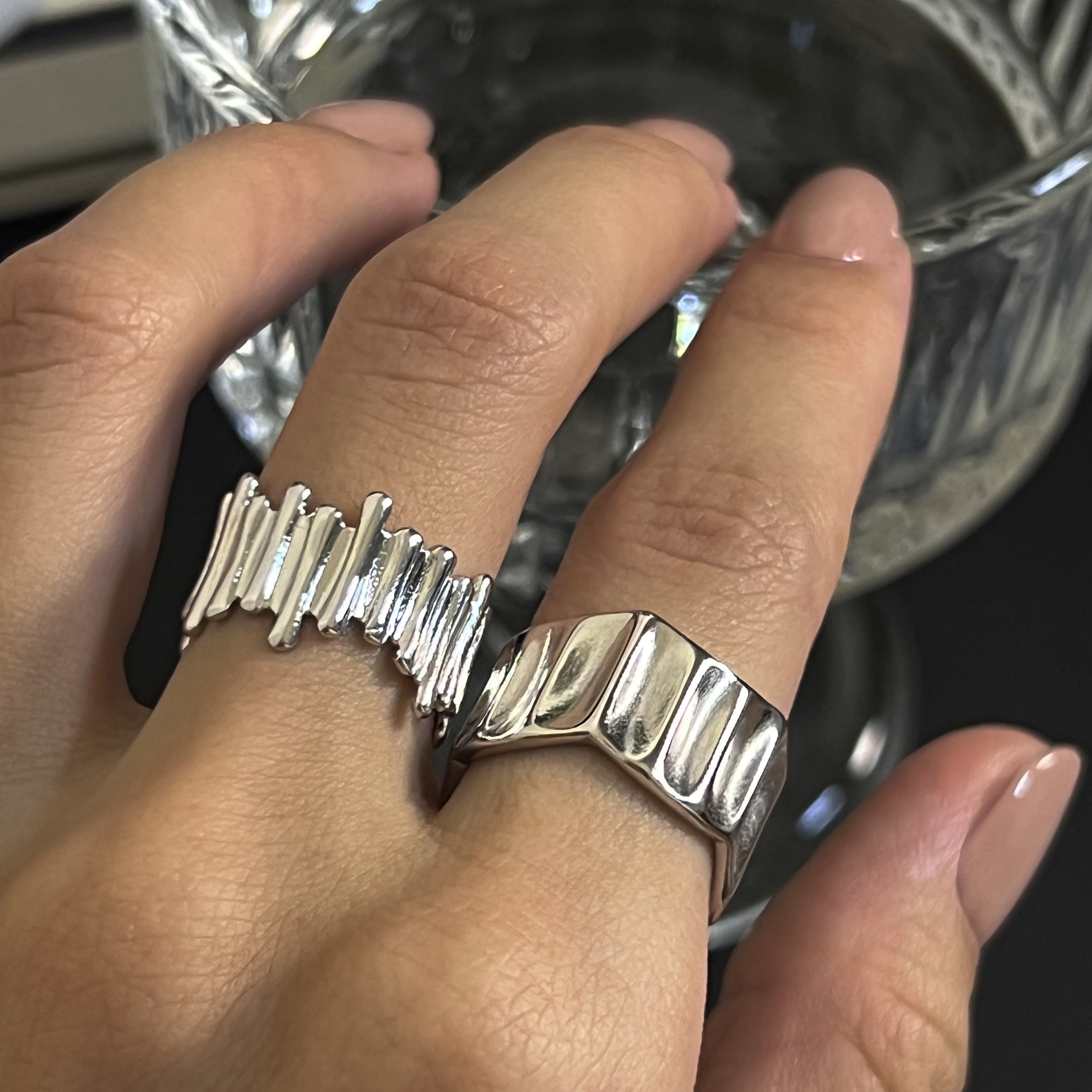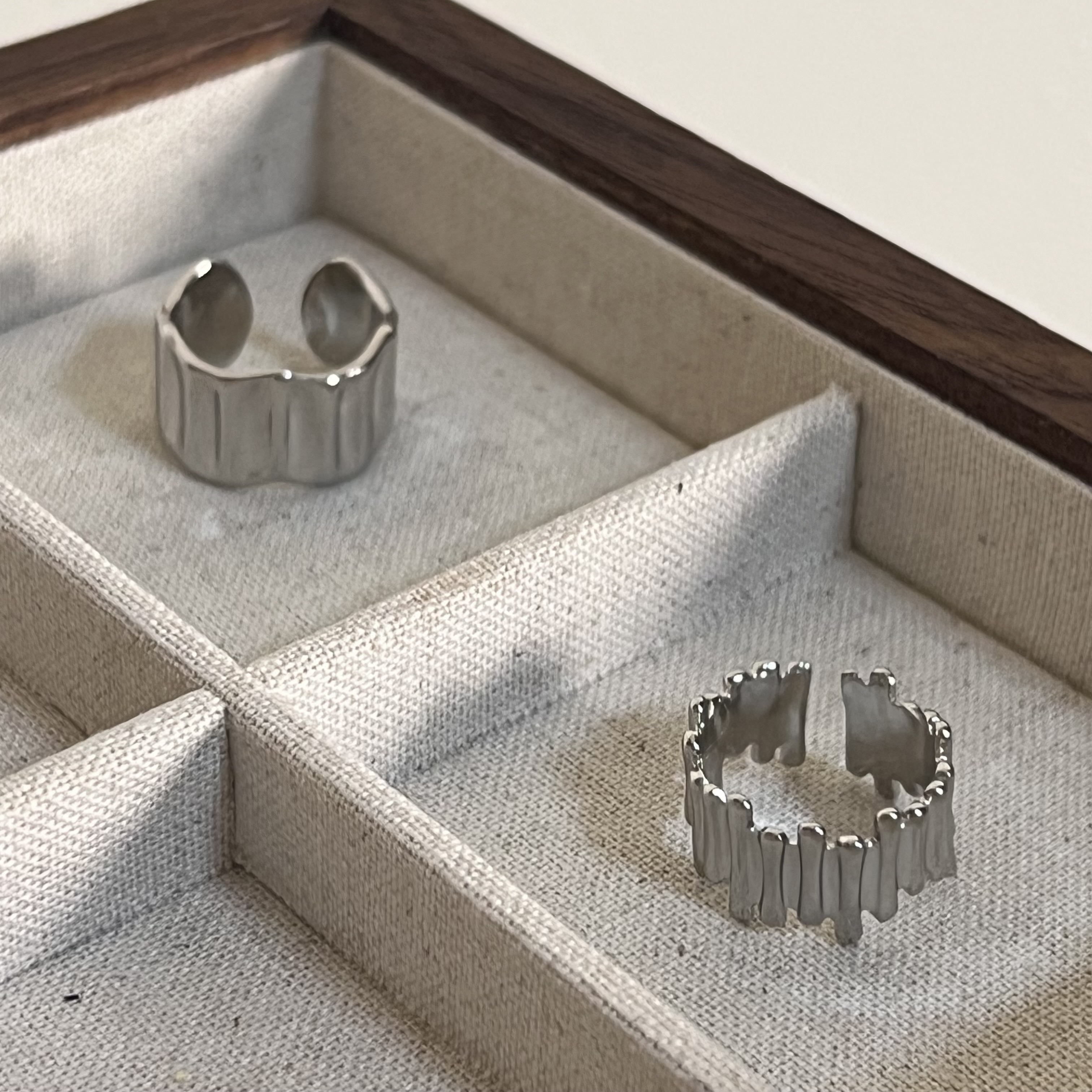 不規則流動波浪鑲嵌鋯石系列開口戒