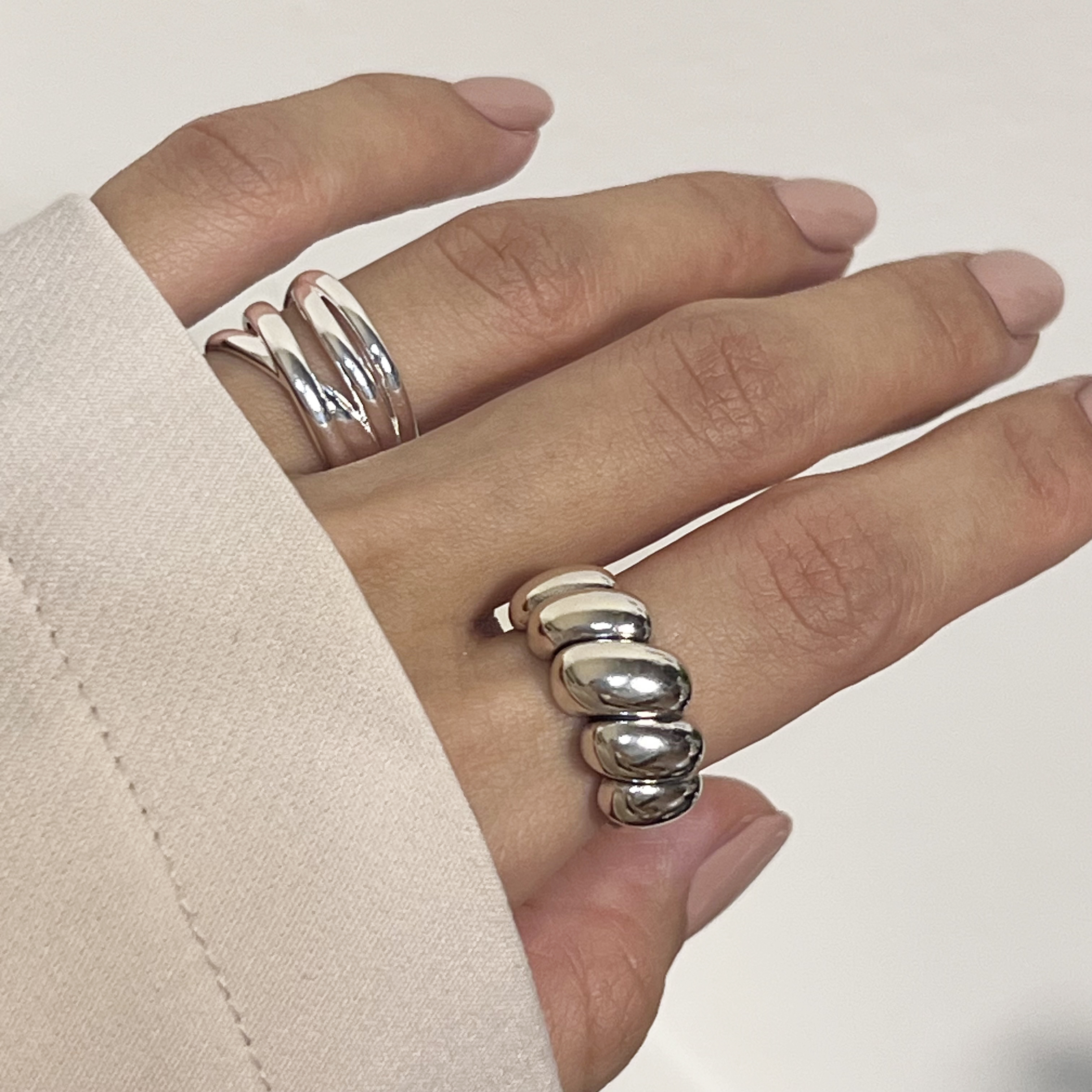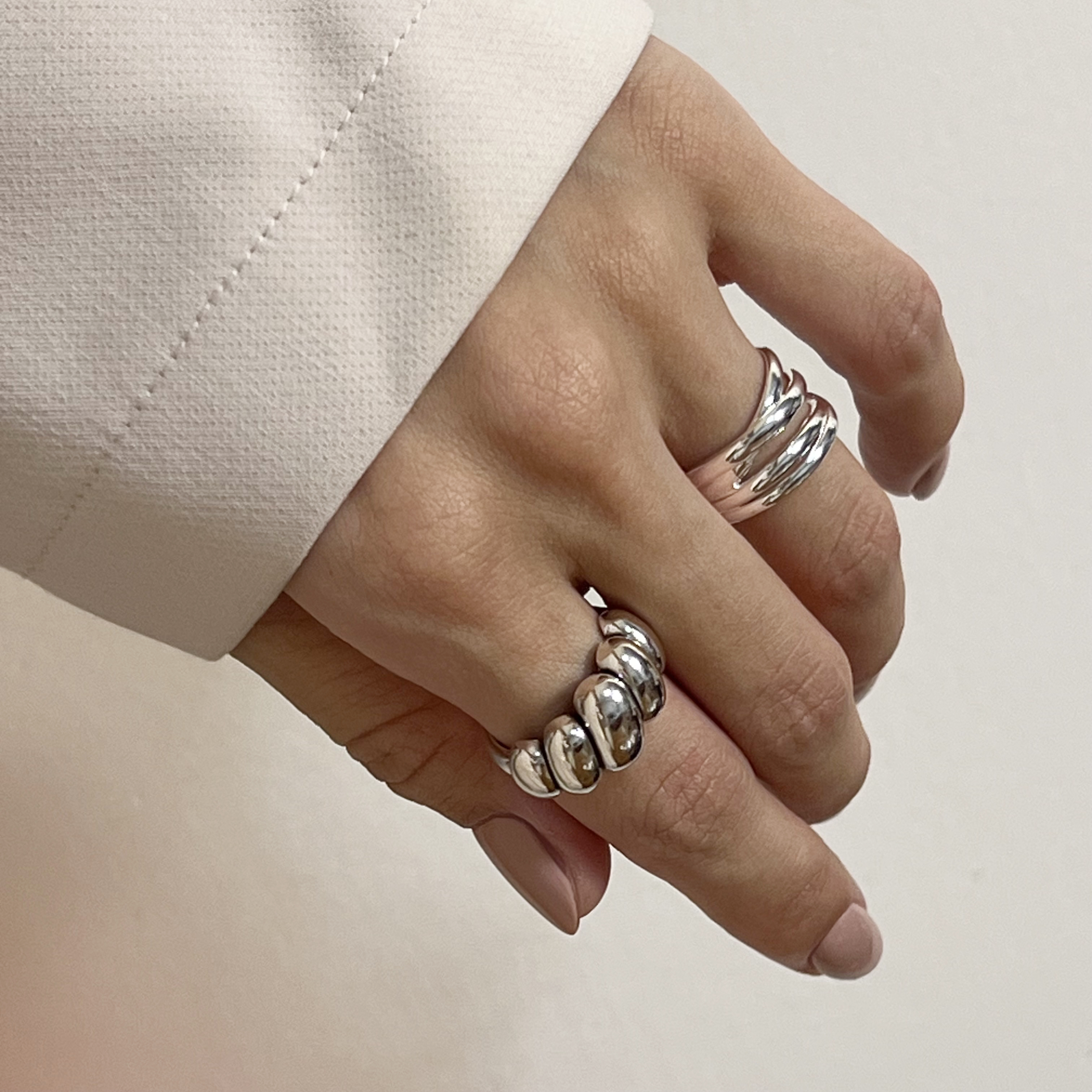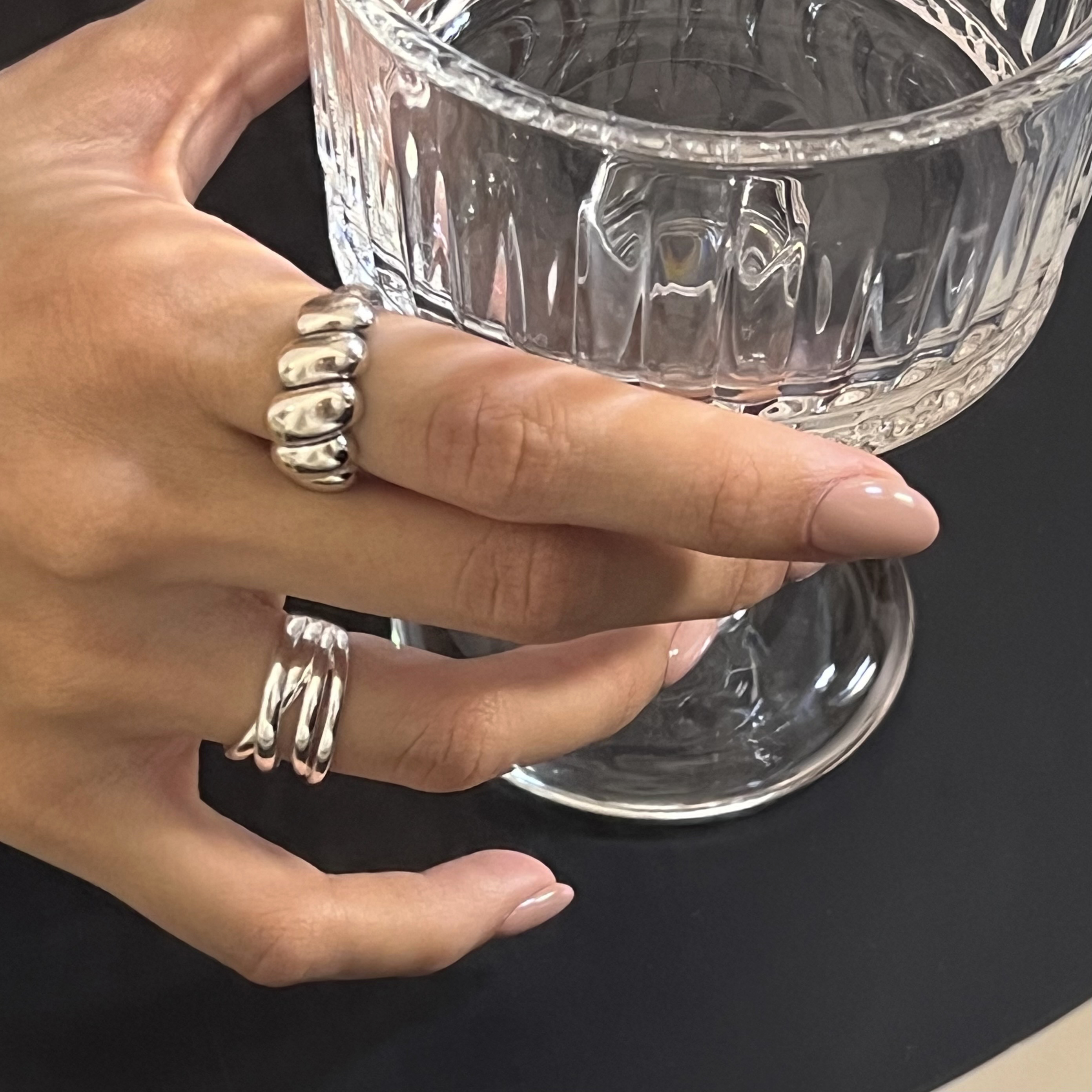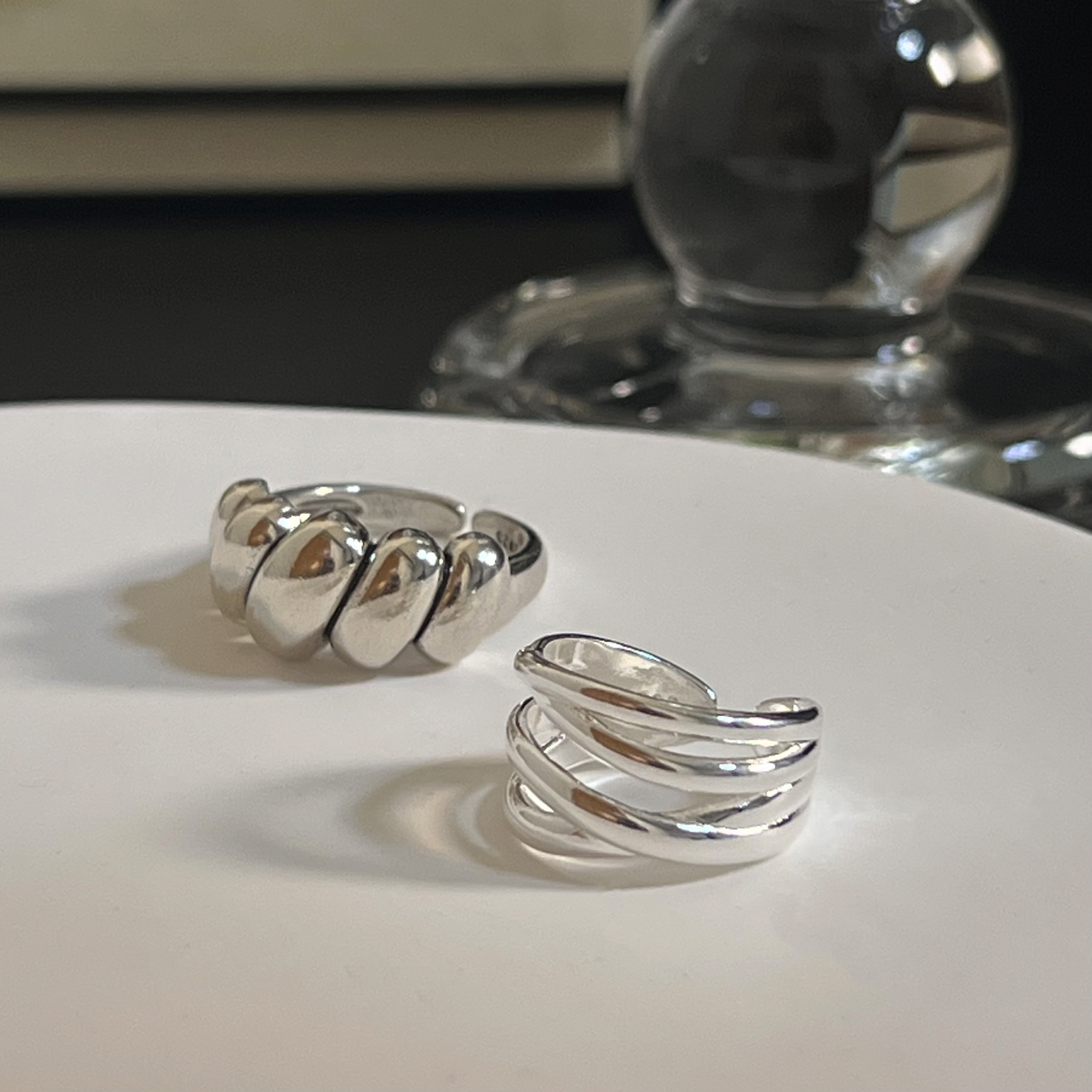 不規則流動波浪鑲嵌鋯石系列開口戒